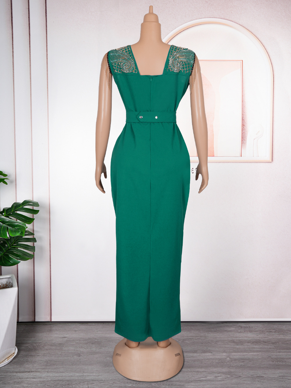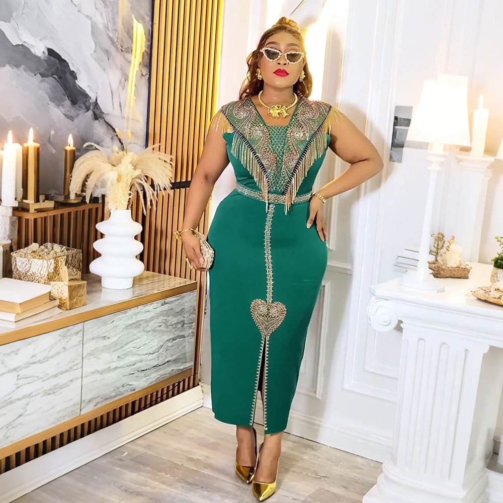 فستان أفريقي أنيق بفتحة رقبة على شكل حرف V وحقيبة خصر بمقاس كبير | Yazijico™